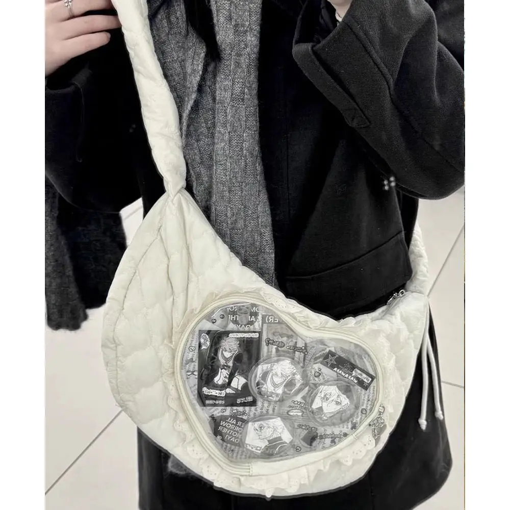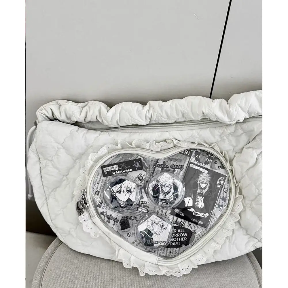 Xiuya Pink Cute Womens Shoulder Bag Pleated Love Heart Lolita Jk Ita Bag Drawstring Ballet Style Sweet Fashion Female Handbag